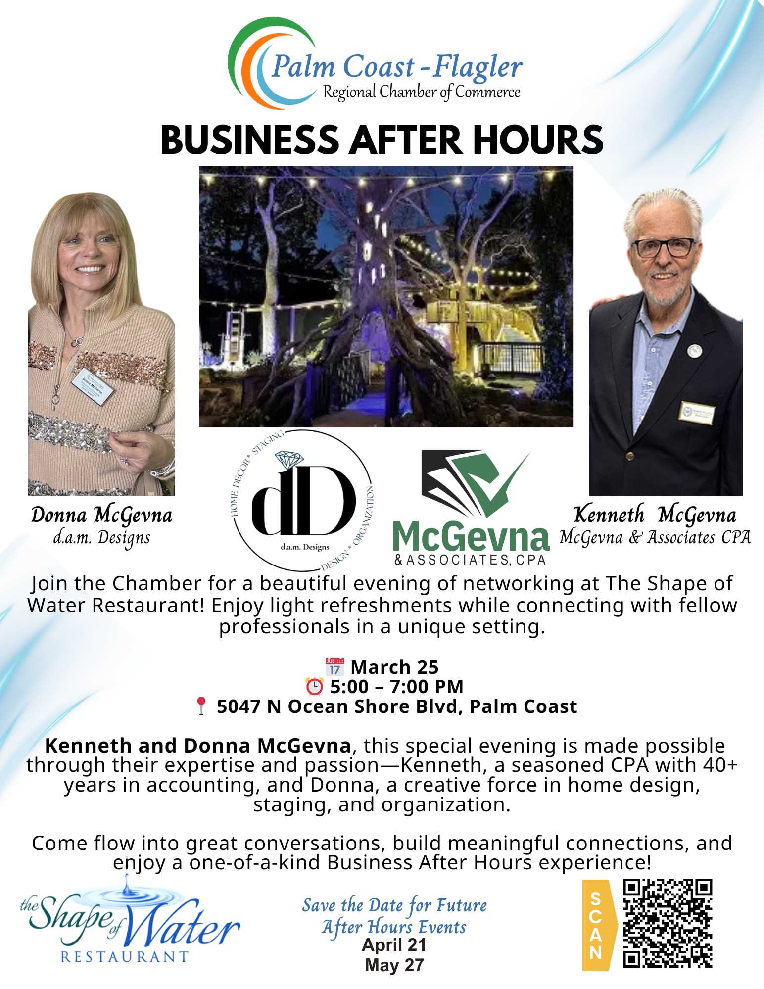 This special evening is proudly hosted by Donna and Kenneth McGevna, with the generous support of D.A.M. Designs and McGevna & Associates CPA. We sincerely thank them for their commitment to our local business community and for helping make this event possible.